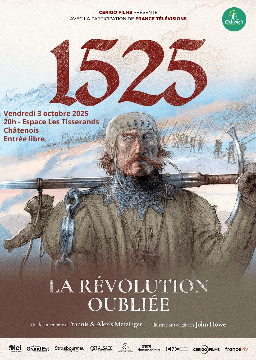 Vendredi 3 octobre, à 20h à l'Espace les Tisserands, à Châtenois, venez découvrir le film-documentaire "1525, la révolution oubliée". Une […] |