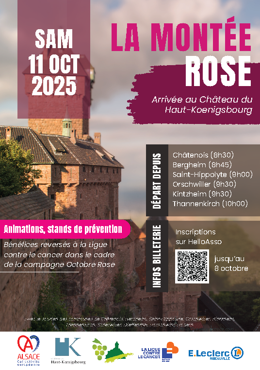 La Montée Rose Samedi 11 octobre 2025, au départ de Châtenois, Bergheim, Saint-Hippolyte, Orschwiller, Kintzheim ou de Thannenkirch, venez prendre […]
