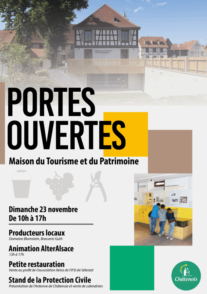 Le dimanche 23 novembre, de 10h à 17h, la Maison du Tourisme et du Patrimoine ouvre grand ses portes pour une journée placée sous le signe de la découverte et du partage. Ce tout nouveau lieu de vie abrite désormais l’office de tourisme de Châtenois, mais aussi un espace muséal qui met en lumière les nombreux objets découverts au fil de plus de 15 ans de fouilles archéologiques menées sur le site du jardin du presbytère.
