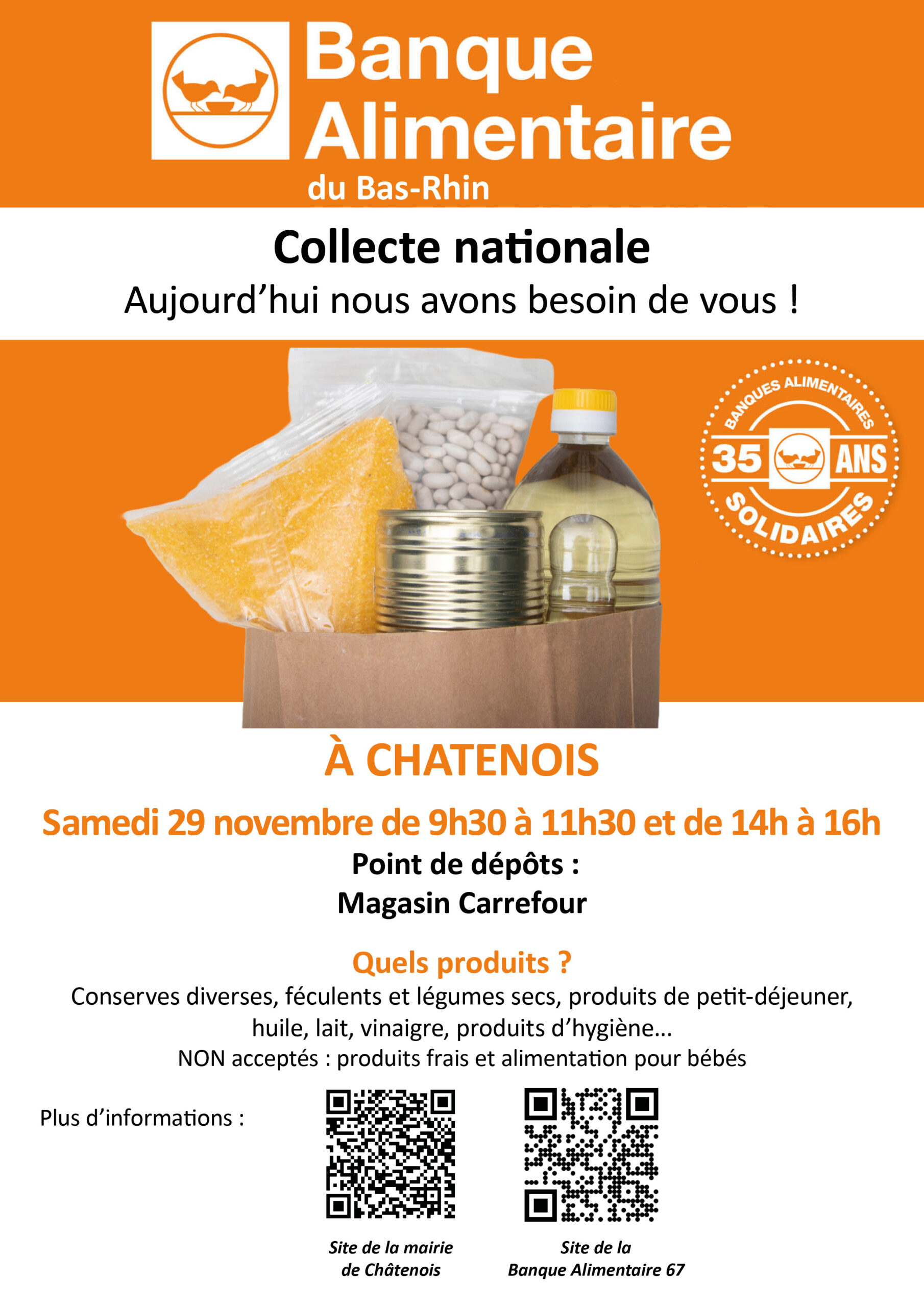 Collecte Nationale de denrées alimentaires à Châtenois Rendez-vous le samedi 29 novembre à Châtenois pour déposer vos dons ! Plus […] |
