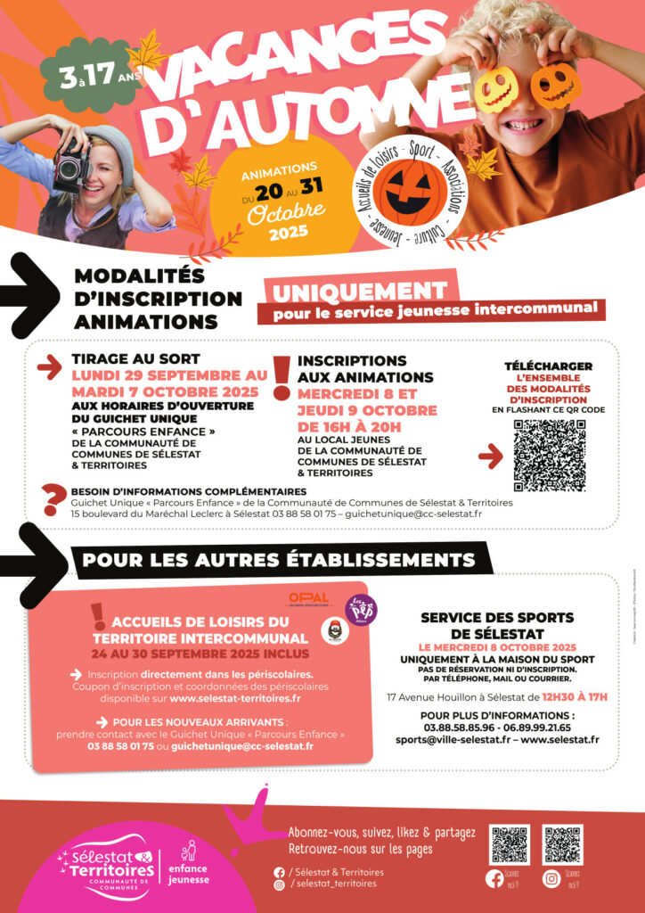 Le service Enfance Jeunesse Communauté de Communes de Sélestat vous a préparé un nouveau programme pour les vacances scolaires d’Automne du 18 octobre au 3 novembre 2025.