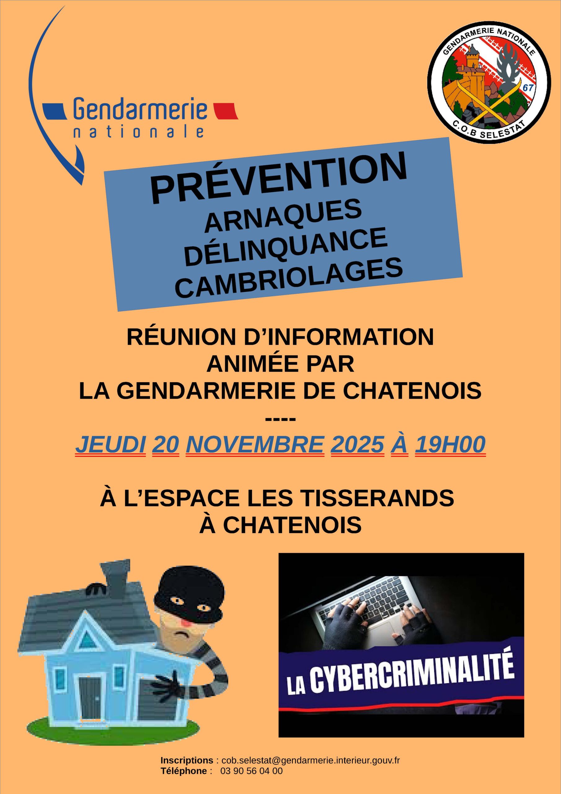 Les thématiques des cambriolages et autres atteintes aux biens, l’opération tranquillité vacance, la cybercriminalité, les escroqueries, etc, y seront évoqués dans un but de prévention et de sensibilisation.